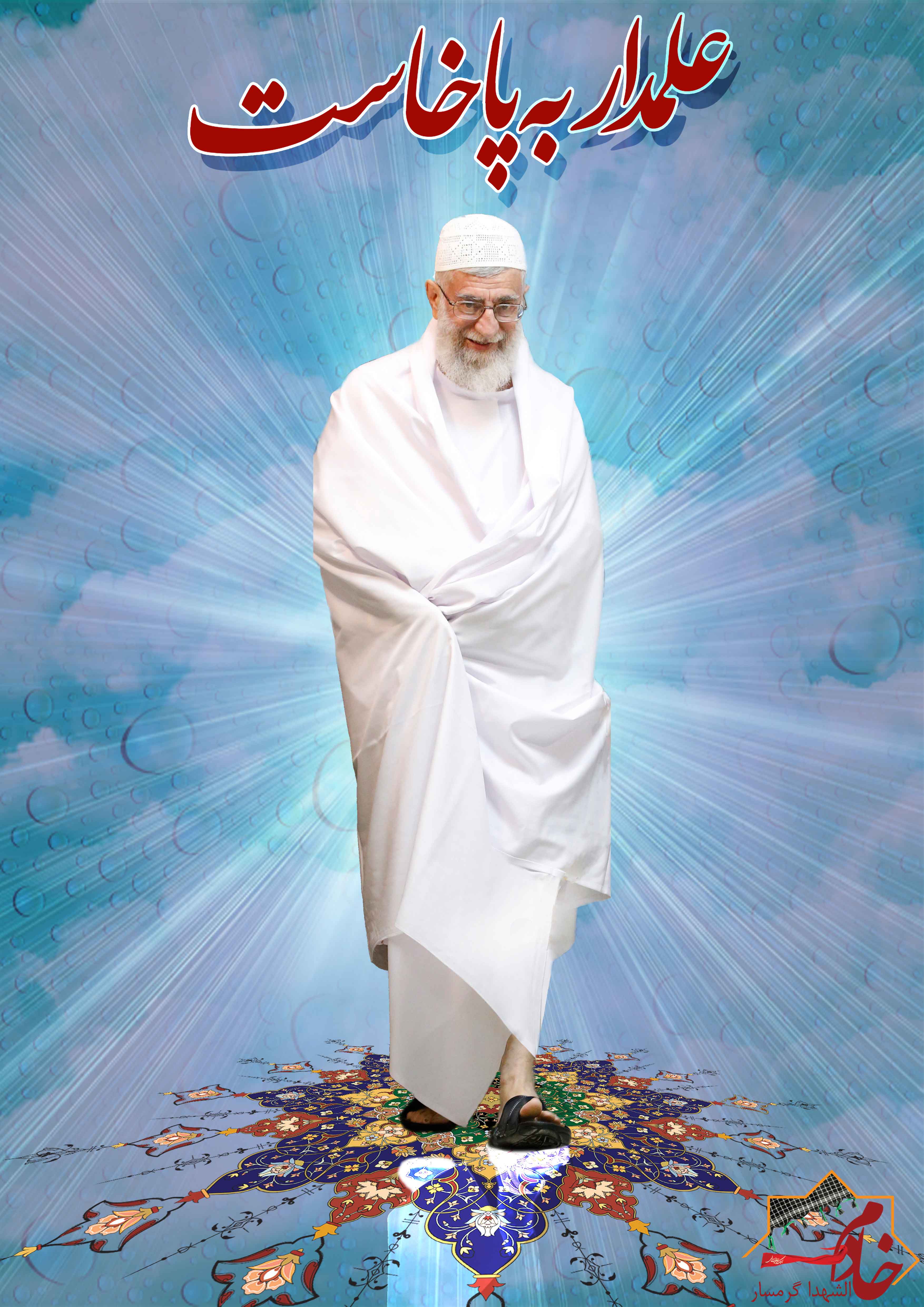 پوستر عکس امام خامنه ای با عنوان "علمدار به پا خاست" تقدیم به عاشقان ولایت