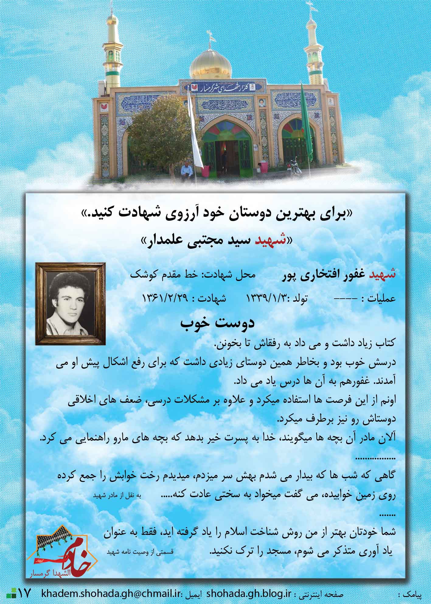 بسم رب الشهداء و الصدیقین قسمت دوم از مجموعه نمایشگاهی شهدای گرمسار رو براتون میذاریم. امیدواریم کم و کاستی های مجموعه رو به عظمت شهداء بر خادمان حقیرشان ببخشید.